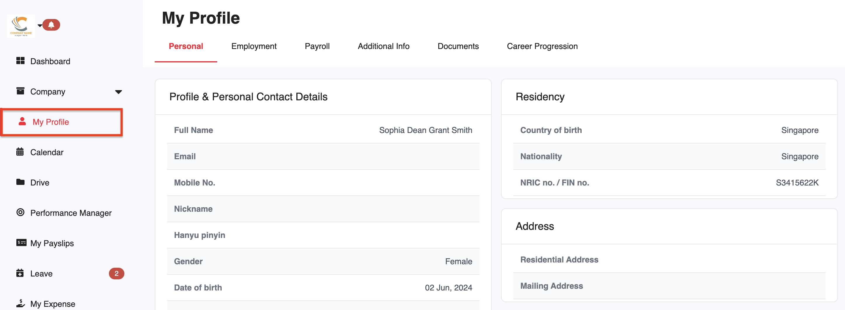 However, certain fields (e.g. Nationality) are restricted and can only be updated by an admin.