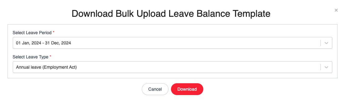 4. In the pop-up window, select the relevant leave period and leave types, then click "Download."