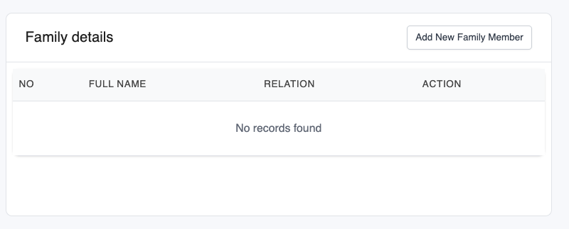 2. Under the Personal page, scroll down to the Family Details section and click Add New Family Member.