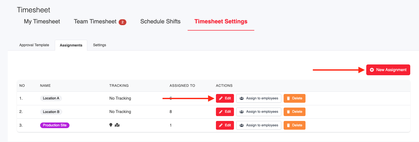 1. Navigate to Timesheet > Timesheet Settings > Assignments.