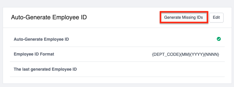 6. Click Generate Missing IDs to automatically assign Employee IDs to staff who do not have one.