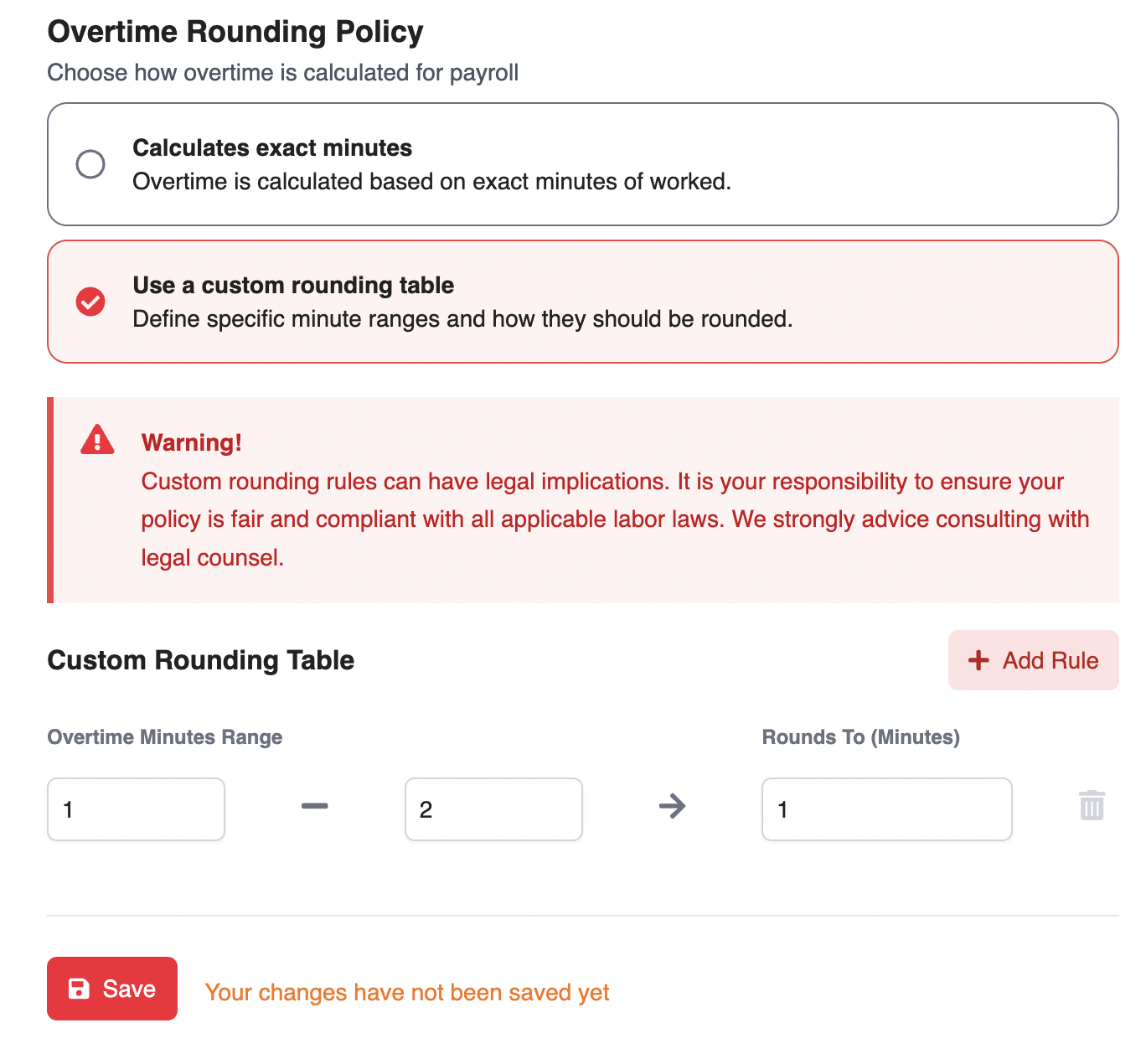 Overtime rounding allows you to standardize how overtime minutes are calculated. Follow the steps below to set up or customize your rounding rules.