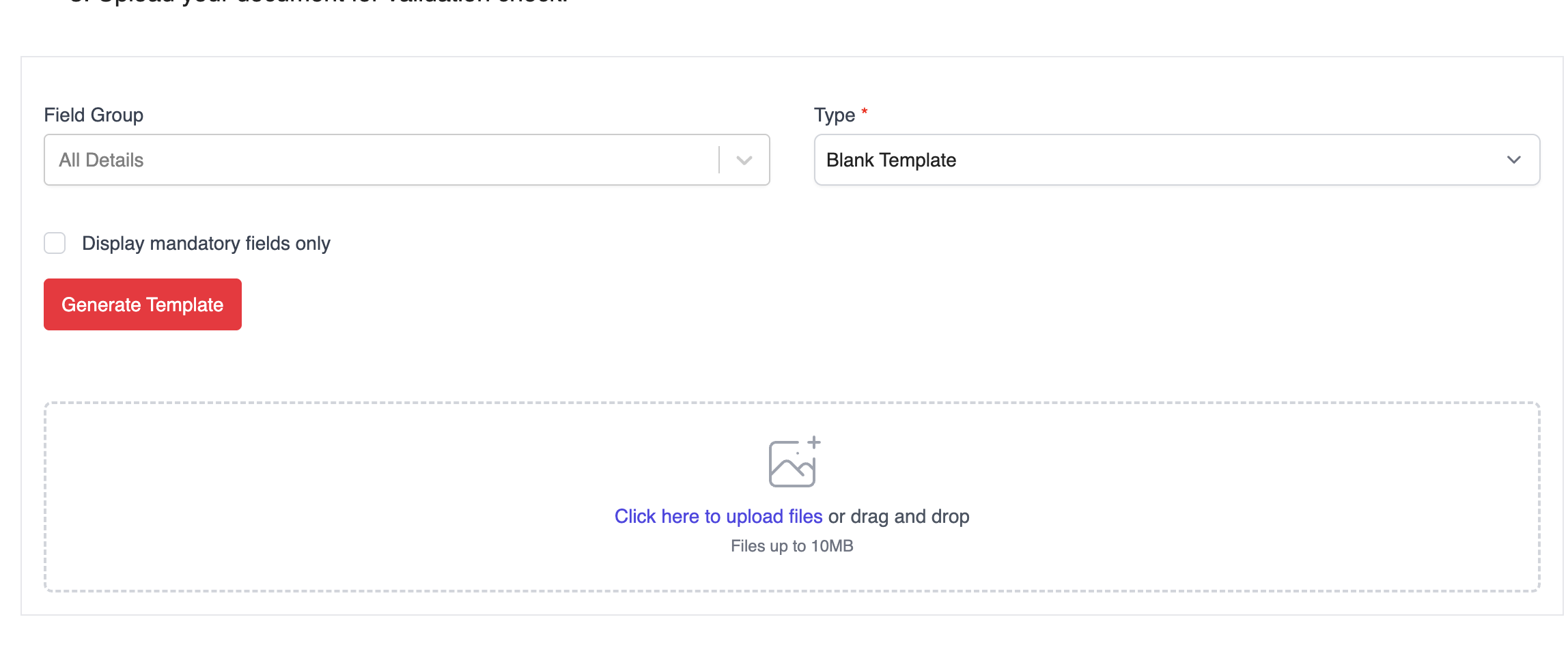 Enable this option to generate a template containing only fields marked as mandatory (*).