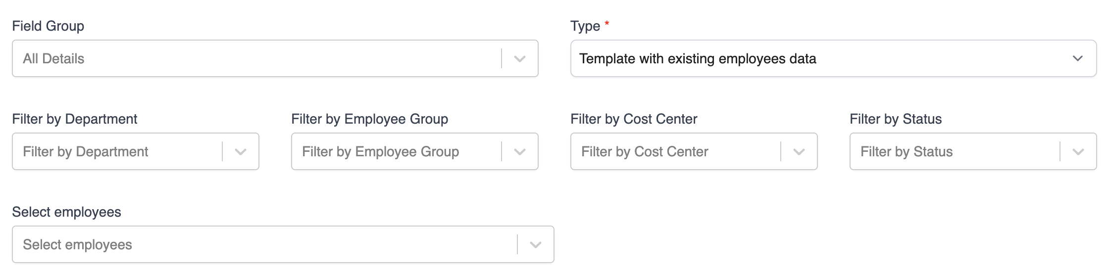 When selected, you can filter employees by department, employee group, cost center, employment status or specific employees.
