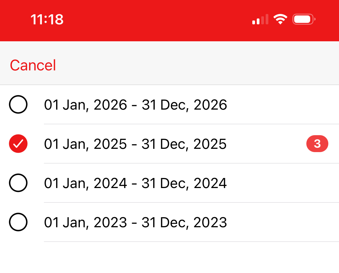 Choose the year you want to apply leave under.