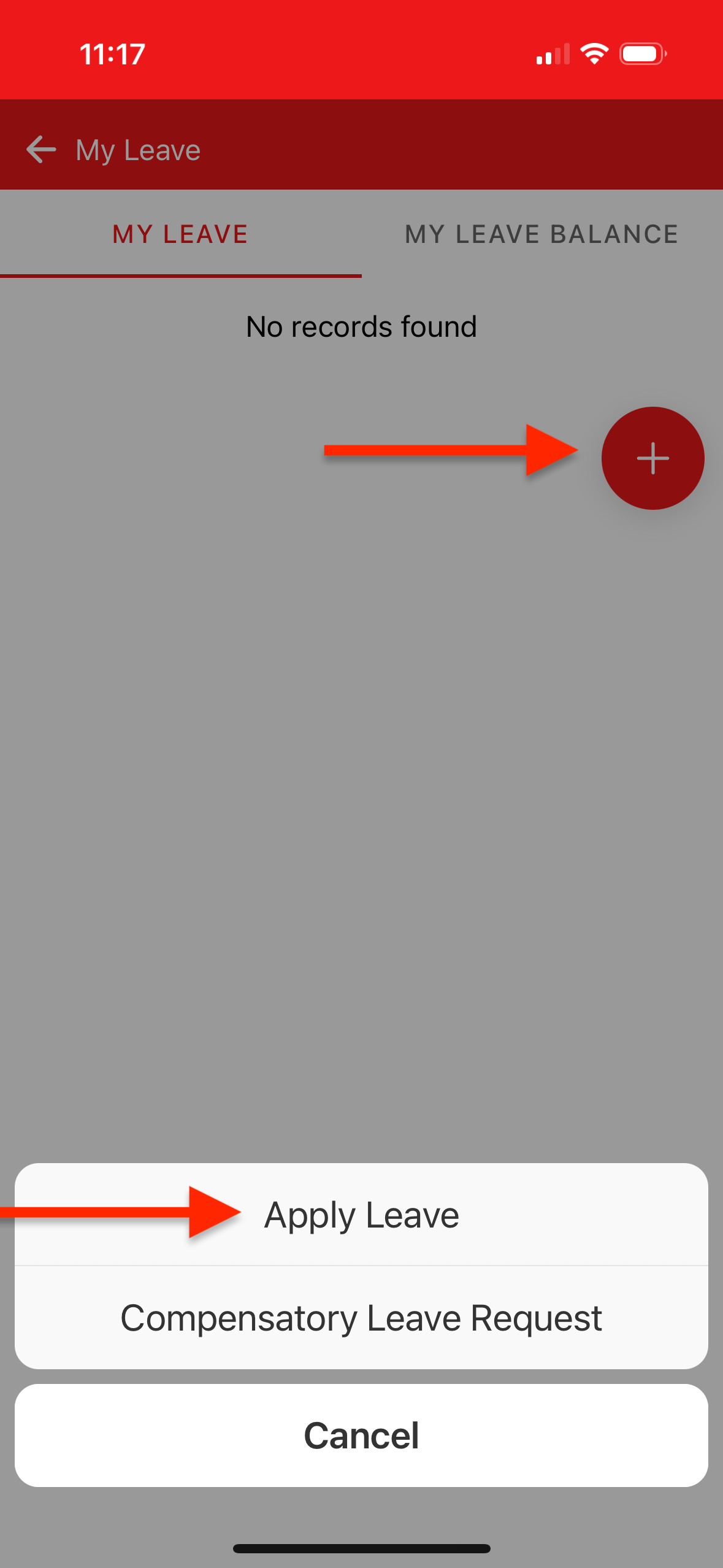 After that, go to My Leave, click the ‘+’ button, and select Apply Leave.
