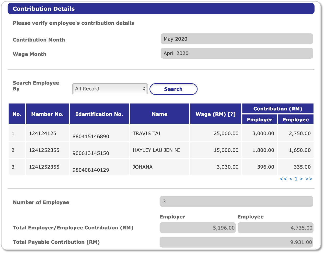 7. Review the employer and employee contribution amounts for accuracy.