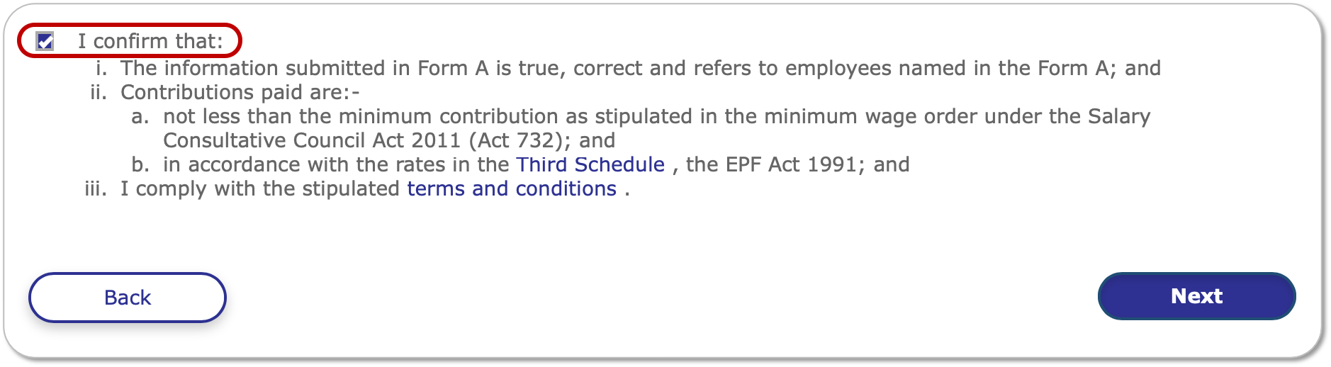 8. Once verified, scroll to the bottom, tick the checkbox to confirm, and click Next.