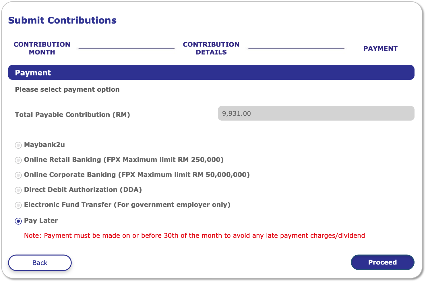 For detailed information on payment methods, please visit: EPF Contribution Payment.