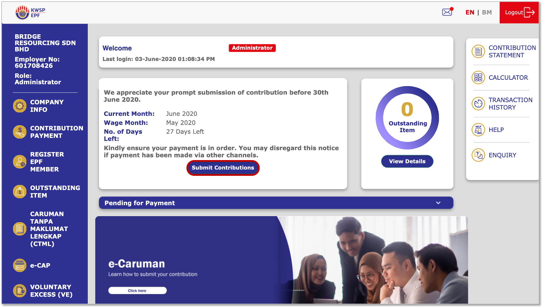EPF Submission via the e-Caruman Portal