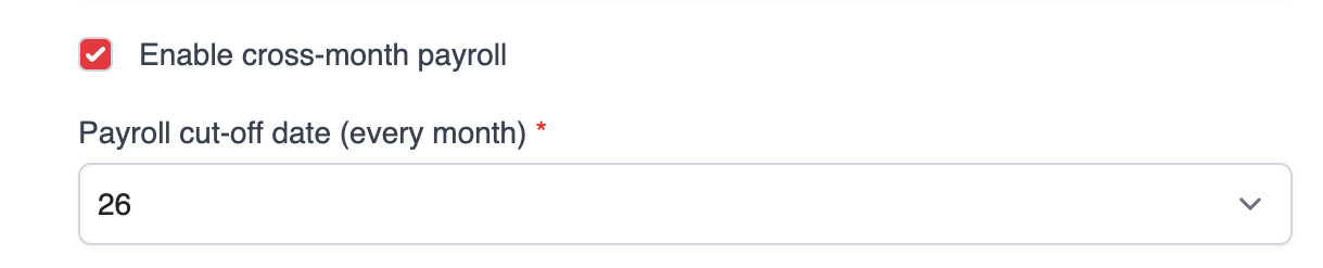If your company uses a cut-off date and needs to process payroll based on a specific date range, you can enable cross-month payroll to ensure accurate calculation of salaries, allowances, deductions, and other pay items.