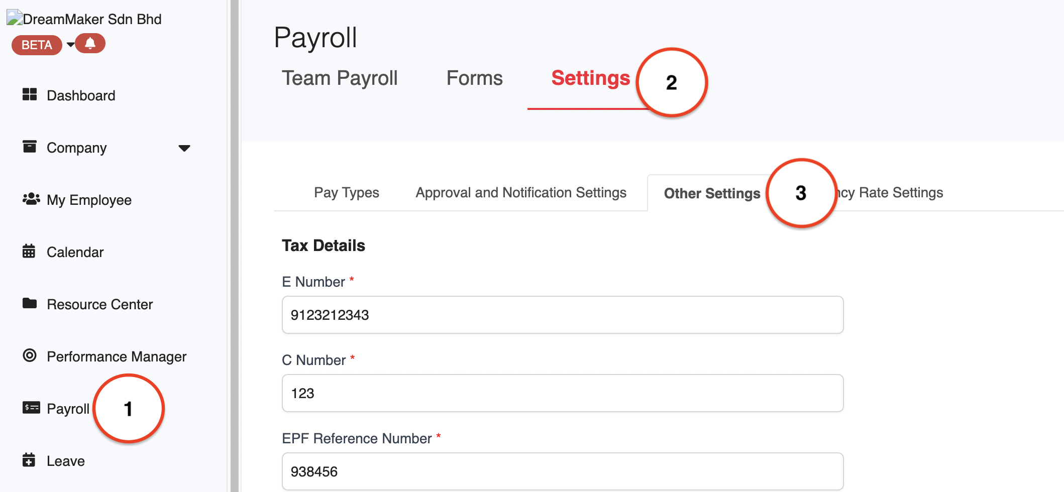 1. Go to Payroll > Settings > Other Settings.
