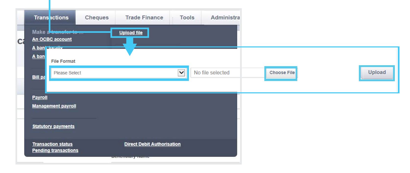 1. Go to Transactions > Upload File, then choose the correct File Format from the dropdown.