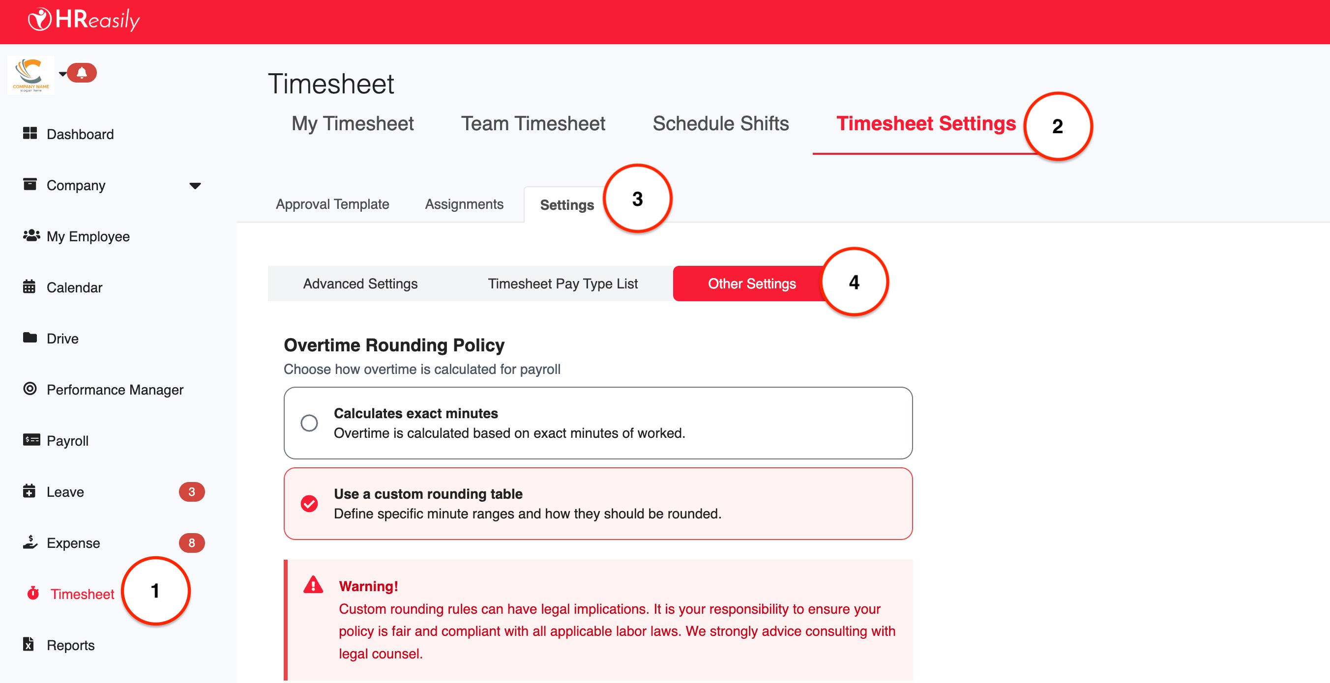 1. Go to Timesheet > Timesheet Settings > Settings > Other Settings.