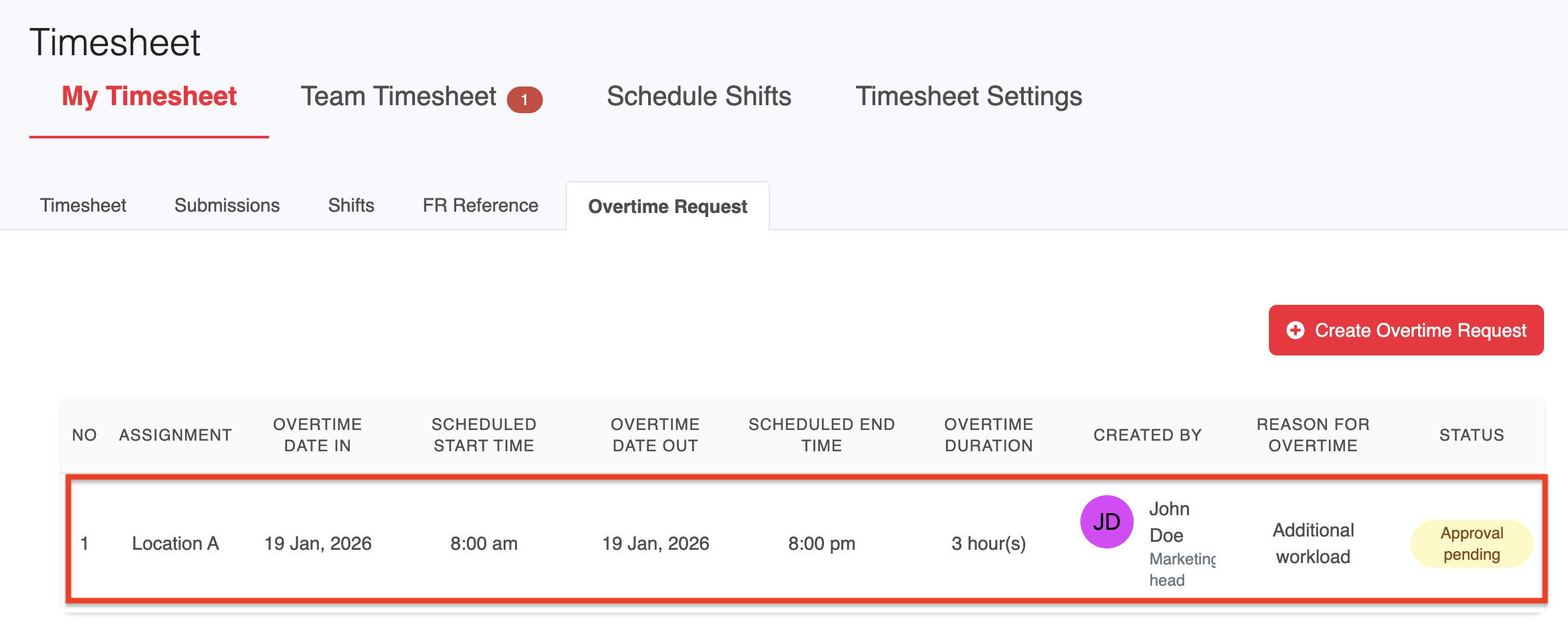 Follow the steps below to review and take action on an employee's overtime request: