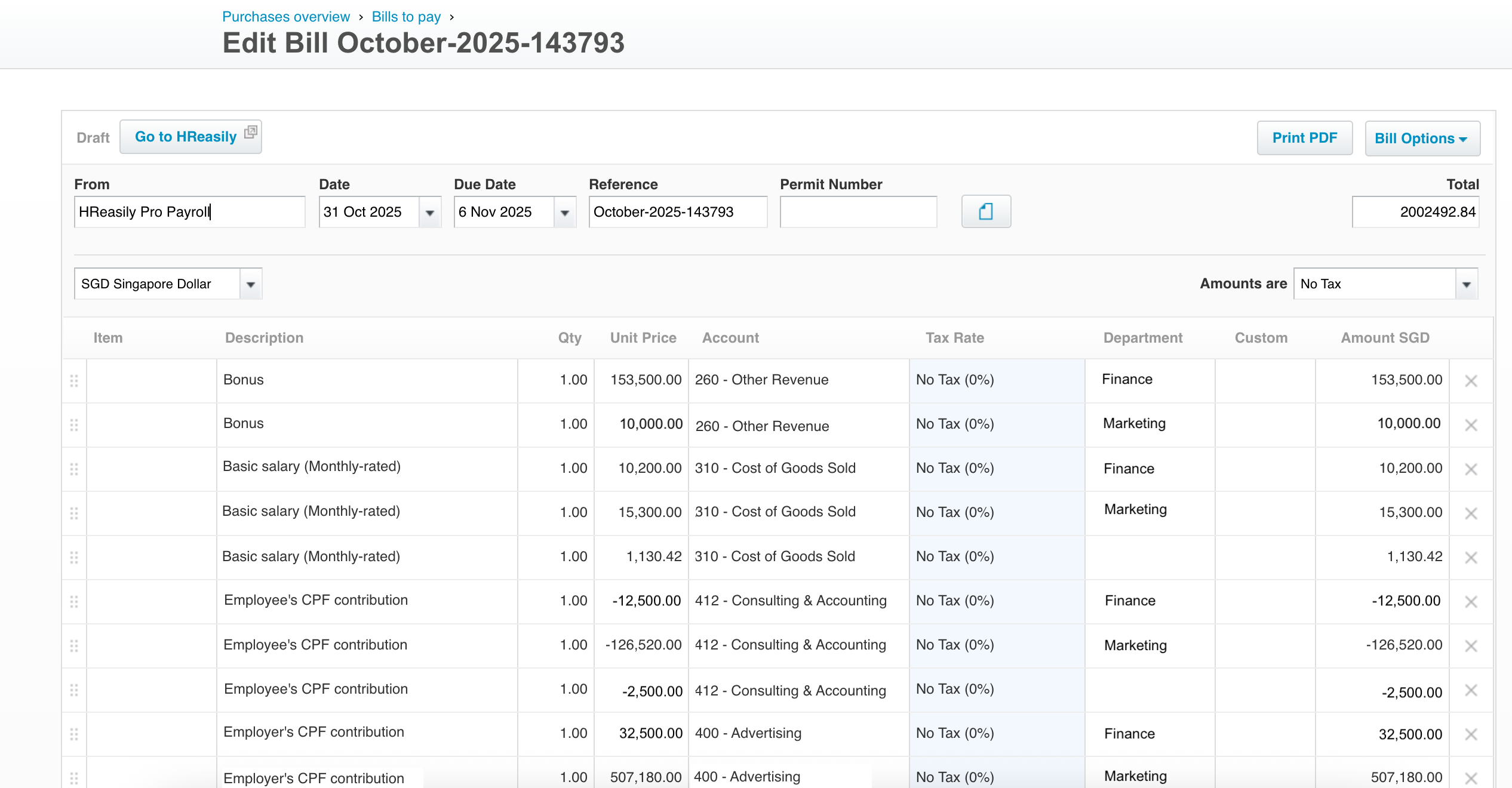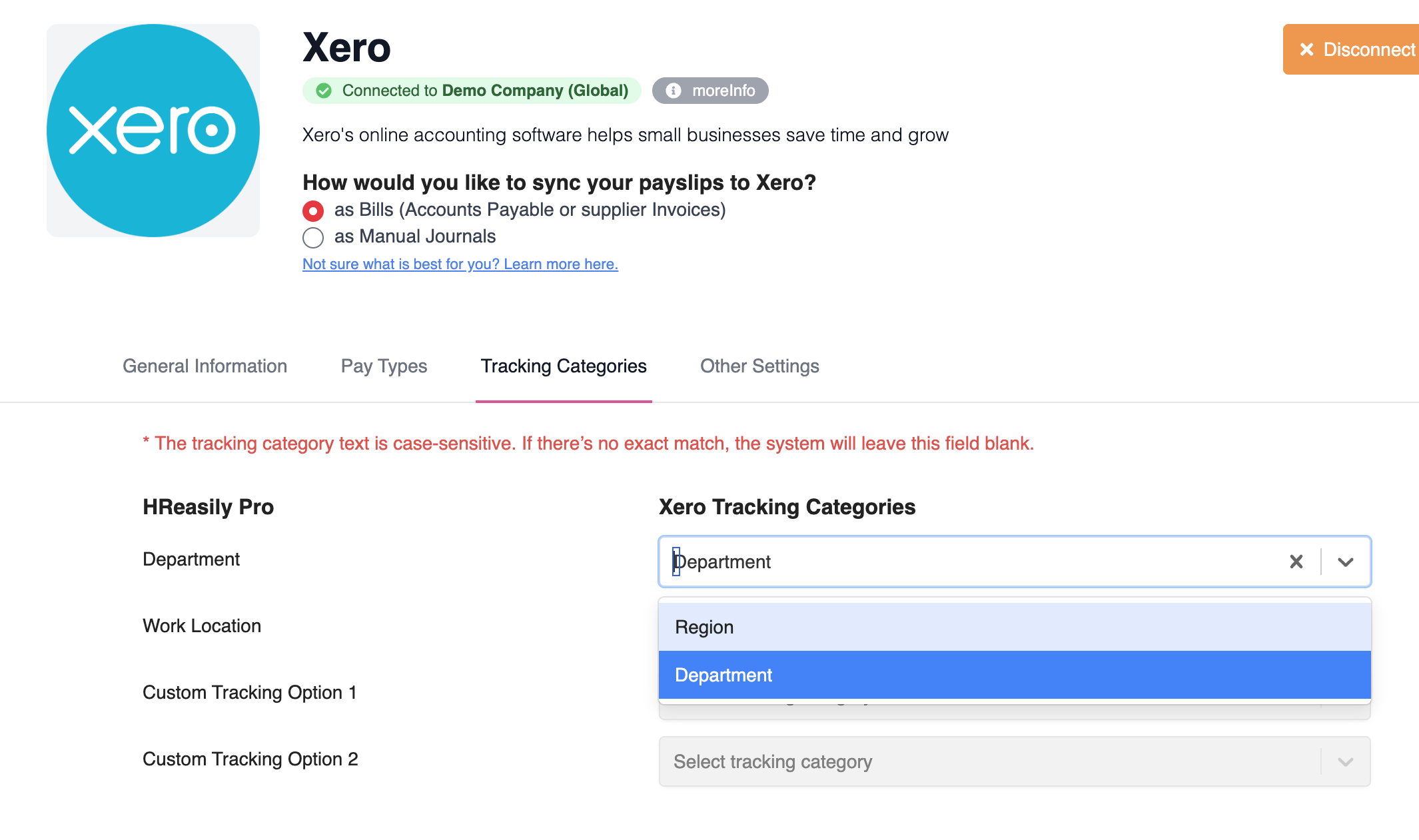 Before proceeding, ensure that the tracking categories are first created in Xero and that they match the list configured in HReasily. You may refer to the official Xero guide here.