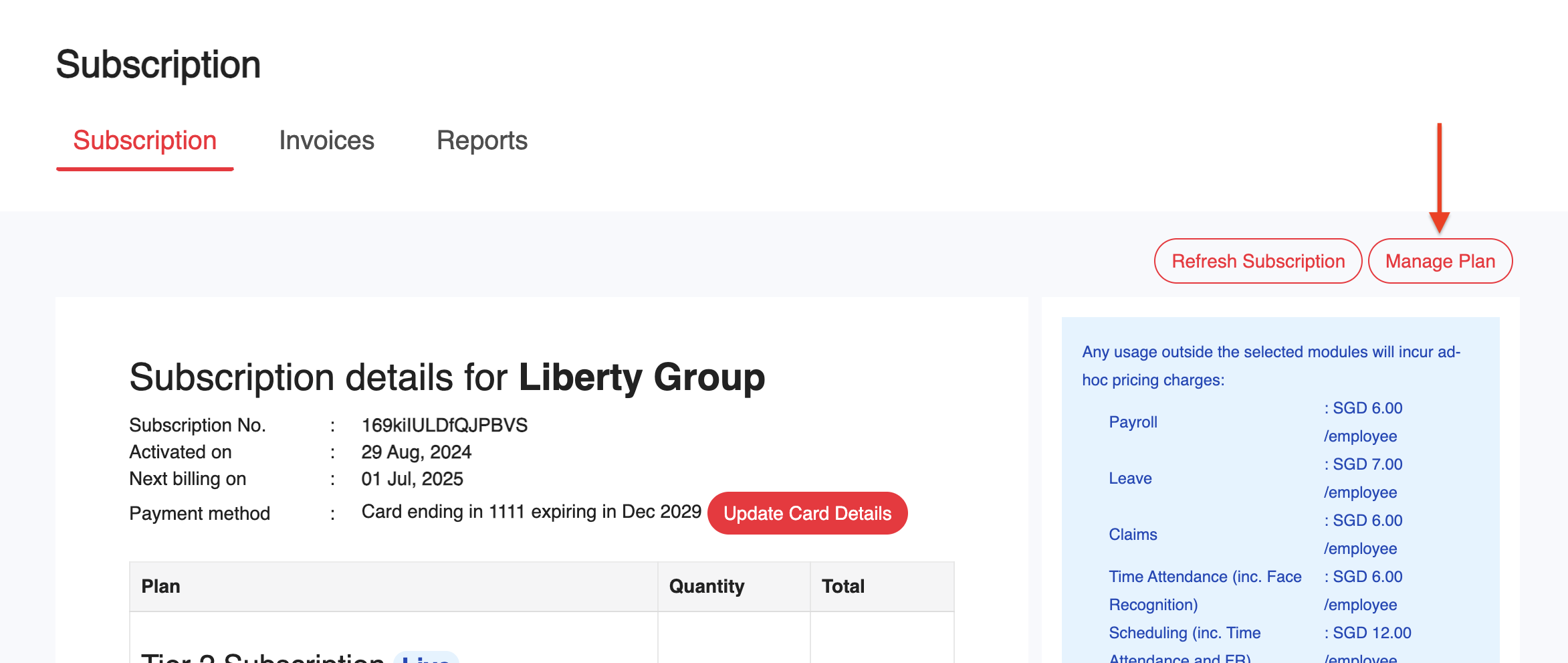2. คลิก Manage Plan