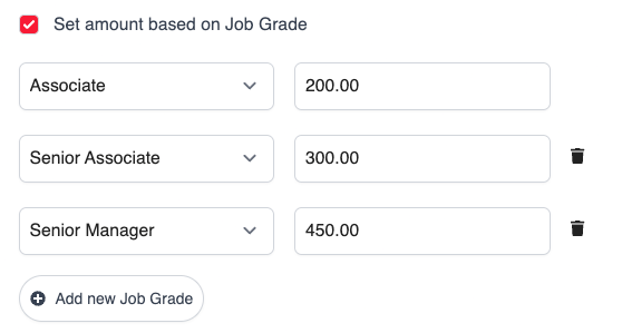 4. กด "เพิ่มระดับตำแหน่งงานใหม่" (Add New Job Grade) จากนั้นให้ระบุจำนวนเงินคงที่ในแต่ละระดับของตำแหน่งงานตามที่คุณต้องการ